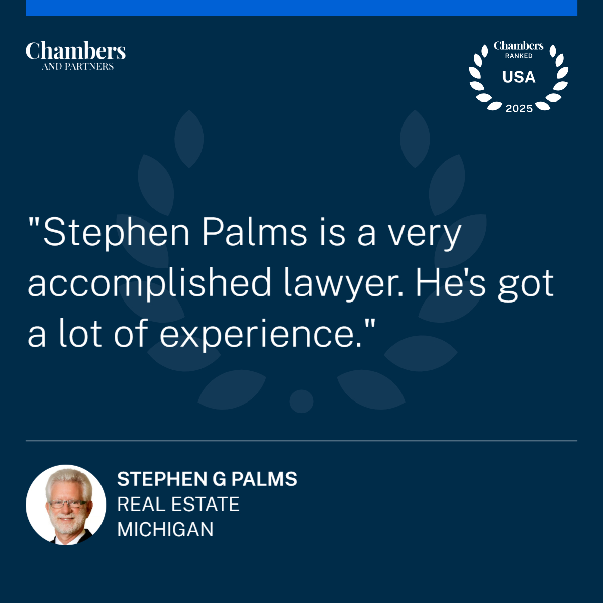 Chambers USA, Real Estate, Band 1, 2007–2024; Senior Statespeople: Real Estate, 2025